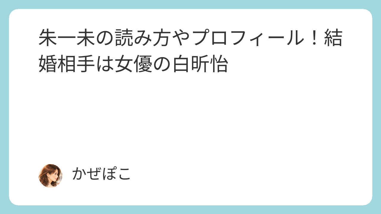 この記事では、朱一未の正しい読み方や経歴、代表作、さらには女優・白昕怡との結婚情報まで、わかりやすくまとめています。
