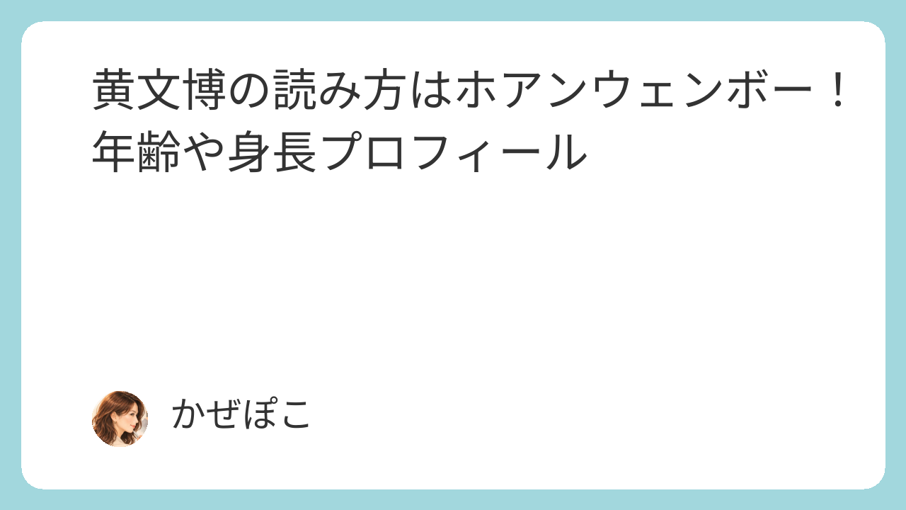 黄文博(Huang Wenbo) の読み方は、カタカナだと ホアン・ウェンボーが、いちばん自然で一般的です。