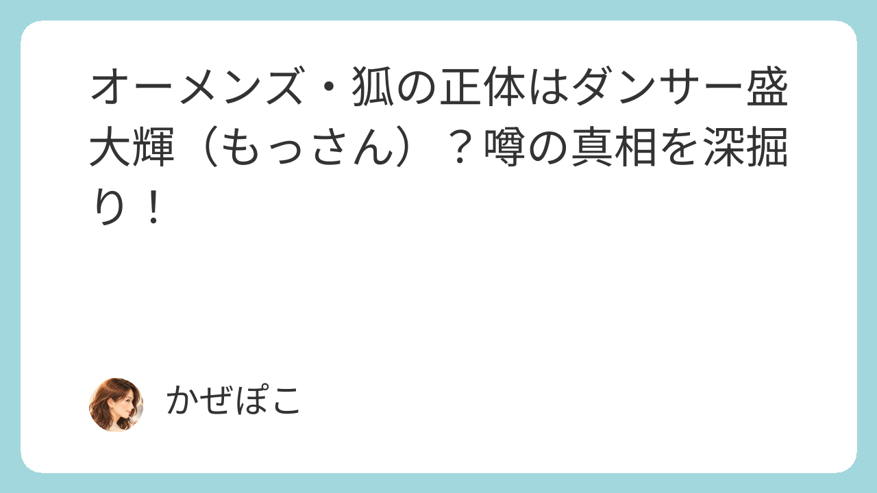 この“もっさん”というのが、どうやら盛大輝(もり だいき)さんというダンサーの通称のようで、「もっさん=オーメンズ狐なのでは?」という噂が、今じわじわと広がっているんです。